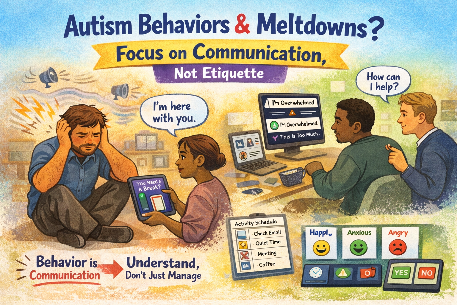 Meltdowns are not misbehavior; they’re a response to sensory overload, physical discomfort, confusion, and fear. For many autistic individuals, especially those with limited verbal communication, behavior is communication. The question shifts from “How do we stop this?” to “What is this person trying to tell us?”